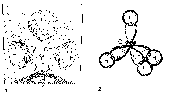1) Молекула метана согласно Ледбитеру и Безант. 2) Современные представления